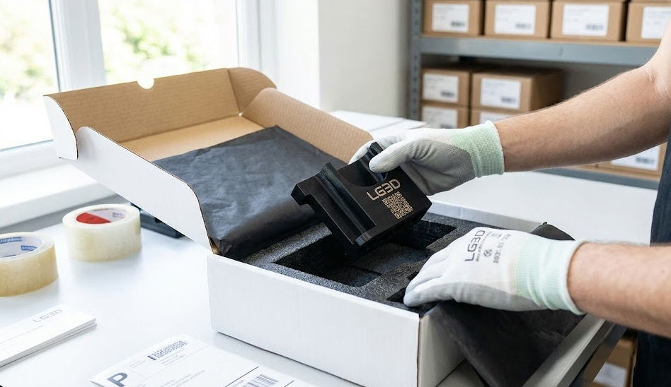 Kvalitetssäkrat hela vägen till kund. Vi tar ansvar för slutfinishen. Det inkluderar precisionsmontage av magneter med anpassade tryckverktyg, applicering av repskyddande gummiduk och noggrann kvalitetskontroll. Varje produkt packas med omsorg i kundanpassat emballage, redo att användas direkt vid leverans. För oss är montaget sista steget i att garantera den premiumkänsla LG3D står för.